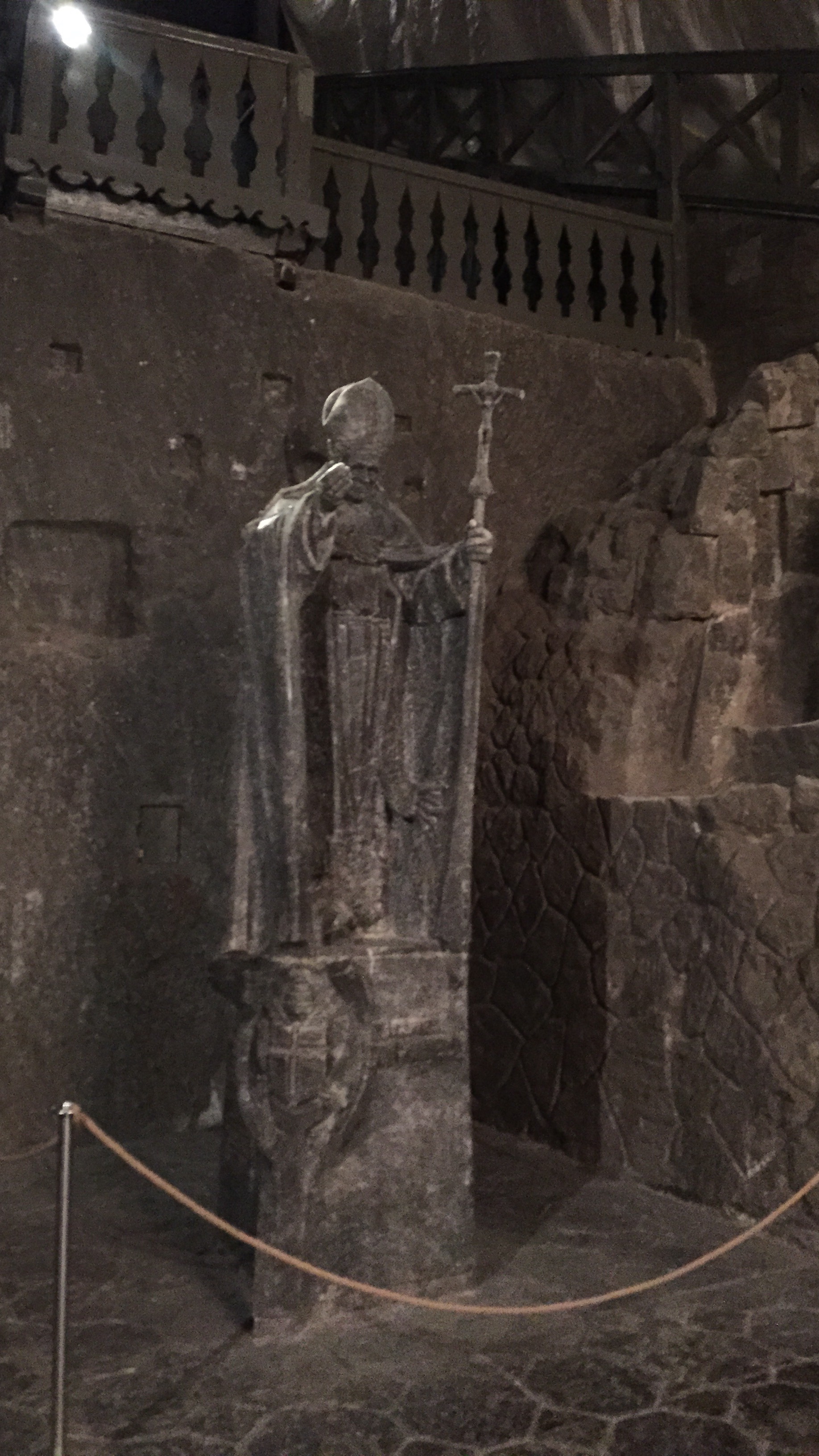 It is now the evening of the 3rd and I am back in my little abode. I enjoy this little studio apartment and I appreciate the solitude. Today I was actually on my own as Robert dropped me off at the Wieliczka Kopalni Soli (The Wieliczka Salt Mine) to tour it. This mine is gargantuan (and that is an understatement). It has 9 levels, but we only saw three. It no longer mines salt, but still produces 150,000 tons through desalination. The tour was almost three hours long (if you want to see pictures and follow me on Facebook, I have posted some there). The picture at the top of this post is of Pope John Paul II and is carved entirely from salt. It was created in 1999. The mine has been in operation for hundreds of years and during WWII the Nazis actually moved a factory into the mine. Some of the salt pockets that have been mined are almost a hundred meters deep and the length and the width of the some of the rooms are astounding. There is a huge chapel (there are actually 20 of them throughout the mine’s rooms and tunnels) and three men carved some of the most amazing Biblical scenes into the walls. The floors, the ceilings, the walls, everything is made of salt. It is not really describable through words. Over a half million people visit it a year, and there is no doubt in my mind why. I think it ranks up with the Seven Wonders of the World. This is my fourth time to Europe and I have seen beautiful and stunning things, but I think the last two days are right at the top of the list for beauty and awe.