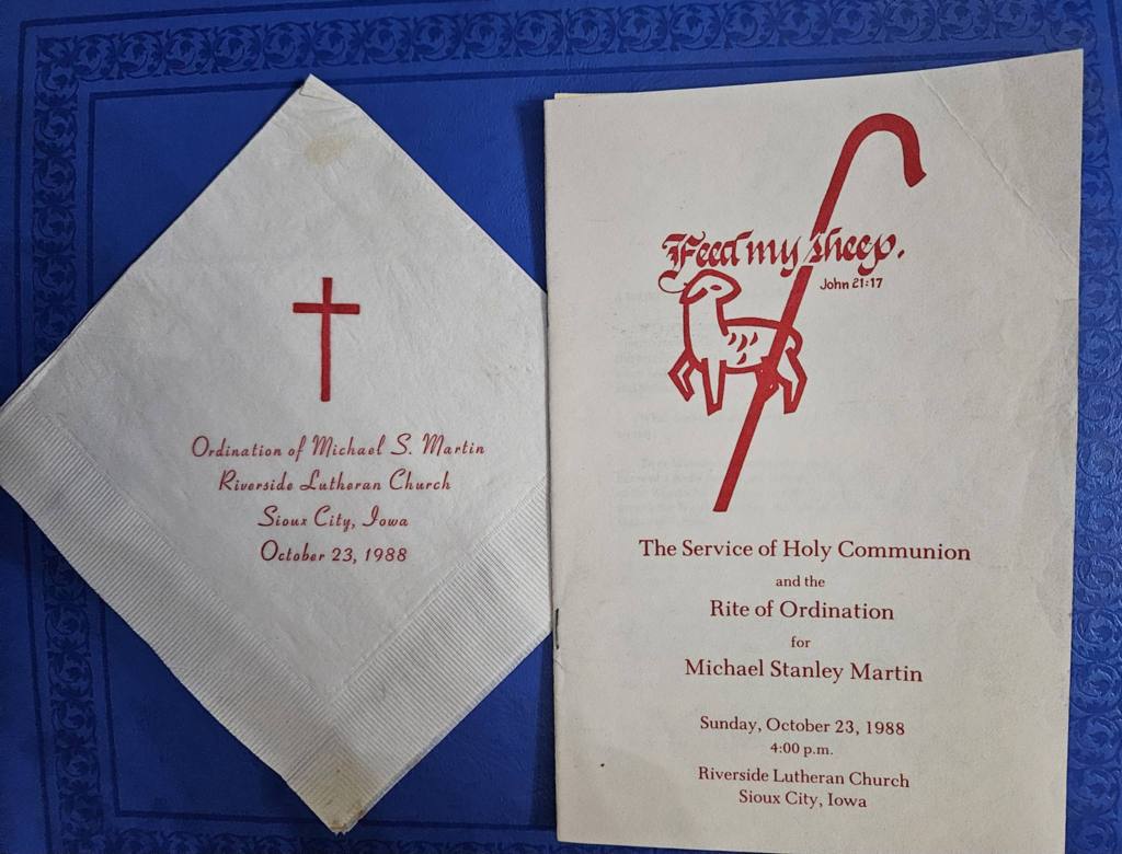 So where does that leave one in terms of community? How do we create an honest community based on discipleship? I think of monastic communities, and perhaps they have some real sense of this sort of commitment, but what about mainstream living and a sense of community. Much like I have noted lately that AI would profoundly change how I would teach only two years later, what I would hope for a congregation, and how I would understand my role as a pastor would be. How would I lead differently? How would I become more of a servant that I was, and I am not sure I did that well to be honest. So much I see differently now. Recently a childhood friend (we are from the same church and I was a classmate of her brother’s) sent me a picture of the bulletin from my ordination. While I remember it clearly (it was created for just my service and the scripture used, and was designed by a friend and printed by my incredibly kind and talented father-in-law at that time), it was nice to see it. Perhaps understanding community and the seemingly contradictory nature of needing solitude is the next part of this discussion. More reading and more consideration. While I have used the following before, it seems apropos here as it too was sung at my ordination by my childhood best friend, Peter Goede. I remember him saying it was not an easy piece to do, but he did it fabulously.